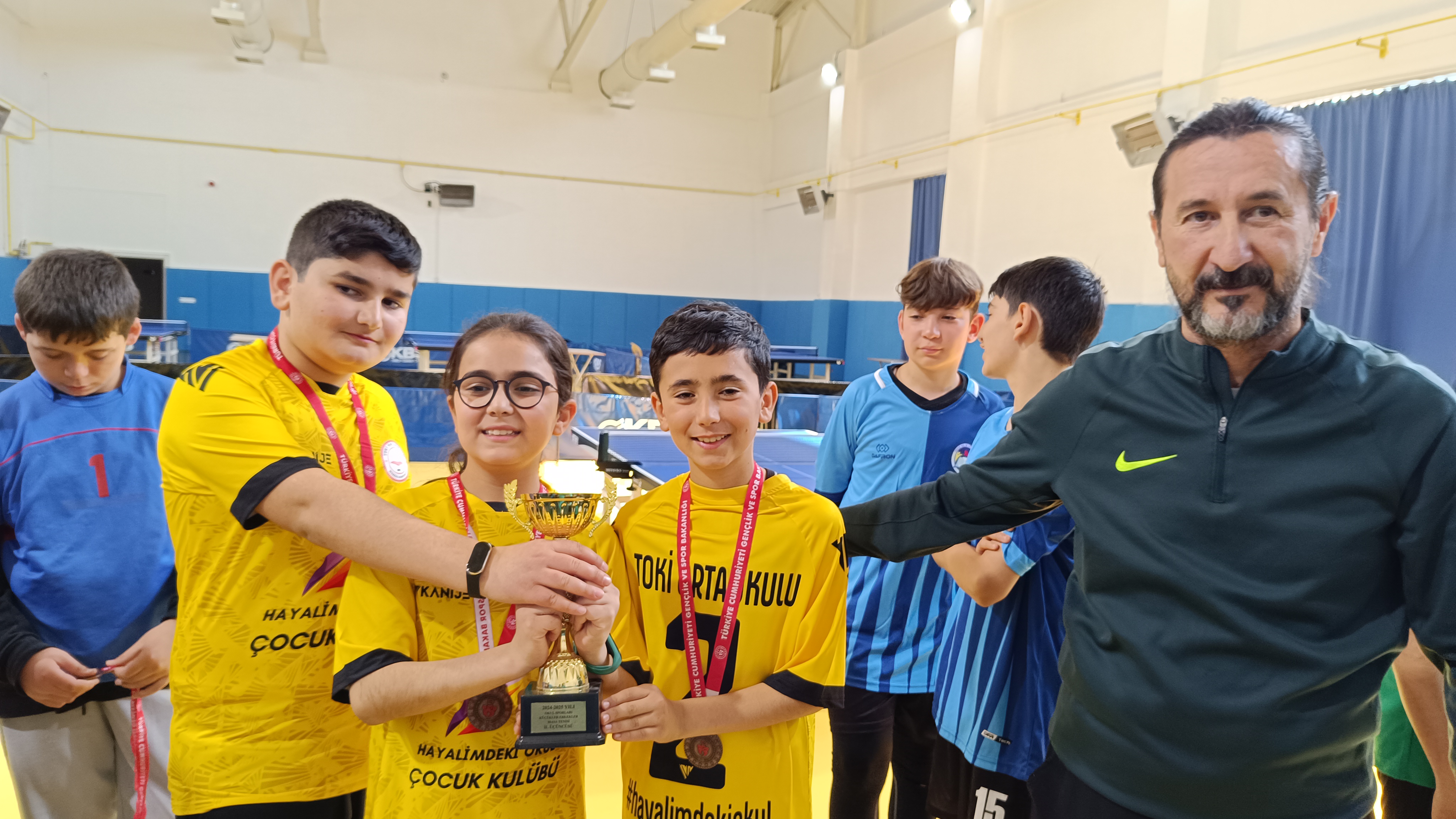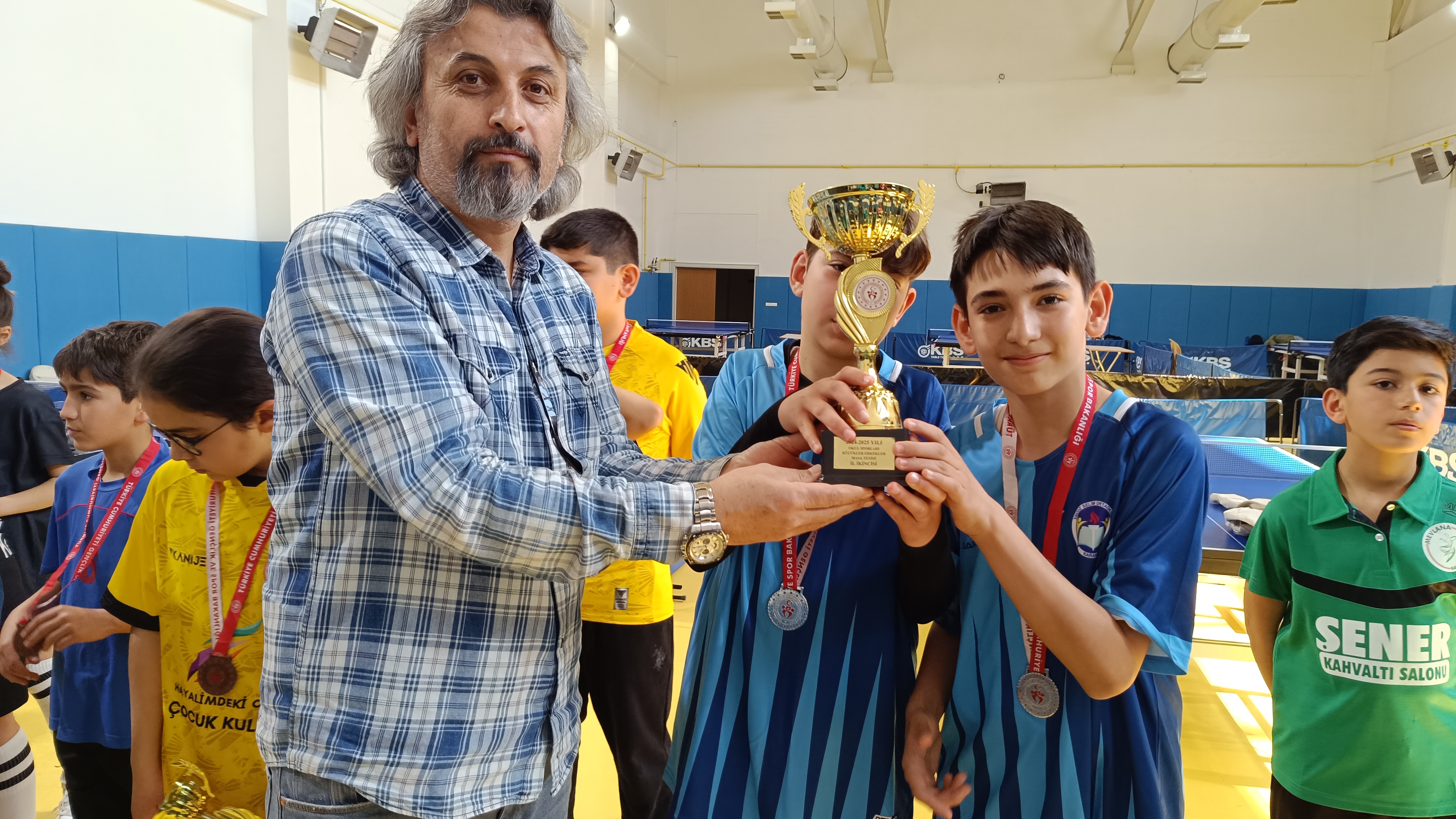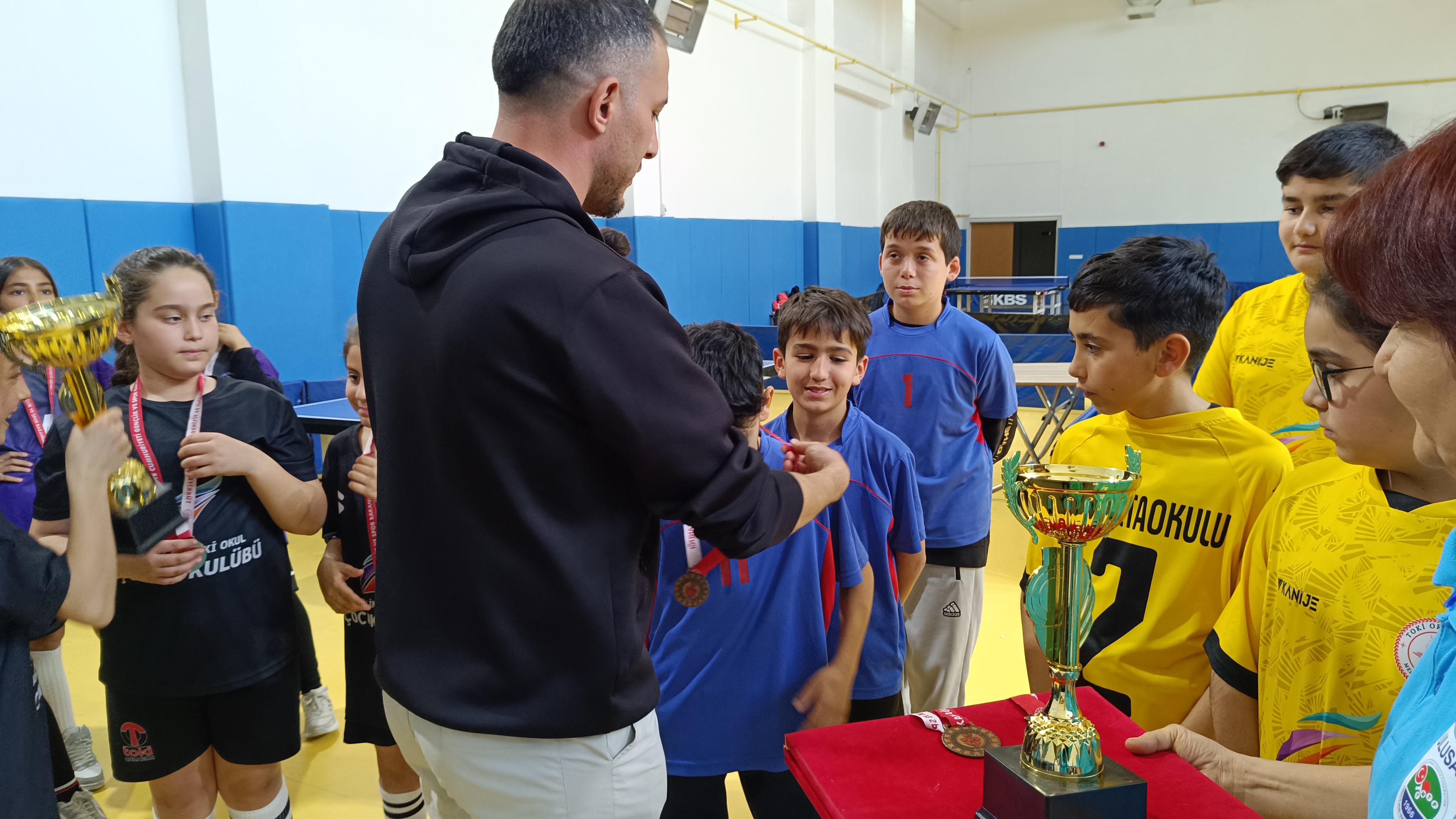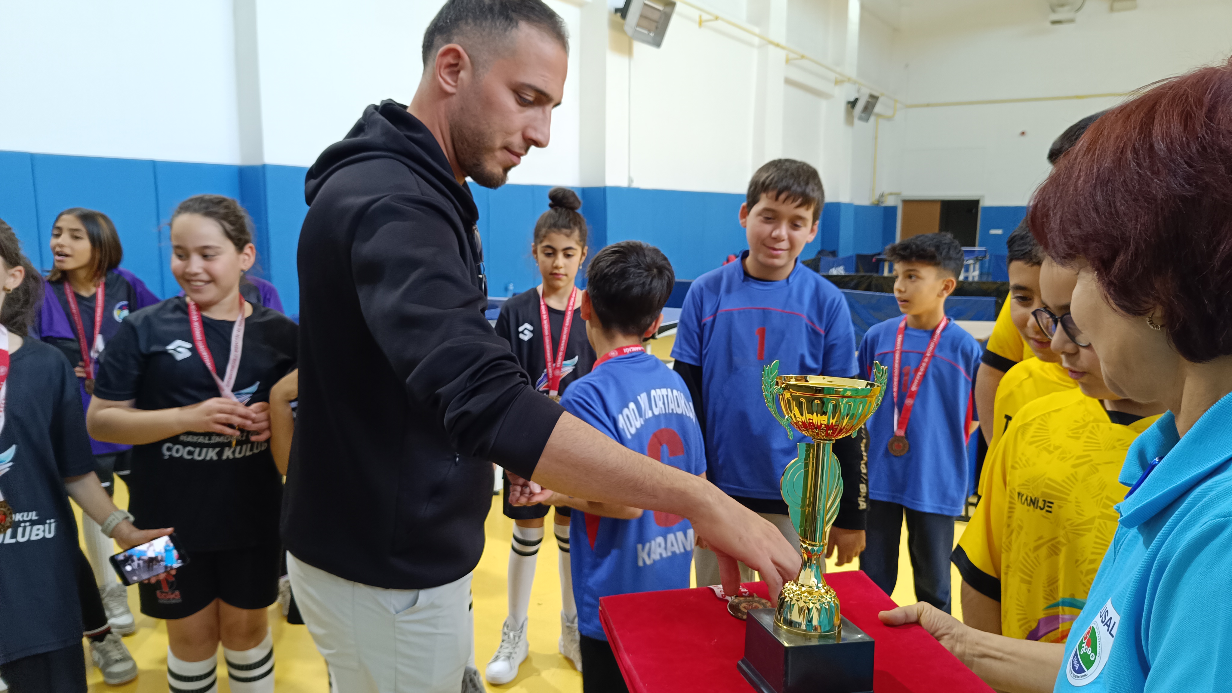 Küçüklerin kıyasıya mücadele ettiği maçlarda dereceye giren öğrencilere madalya ve kupaları verildi.