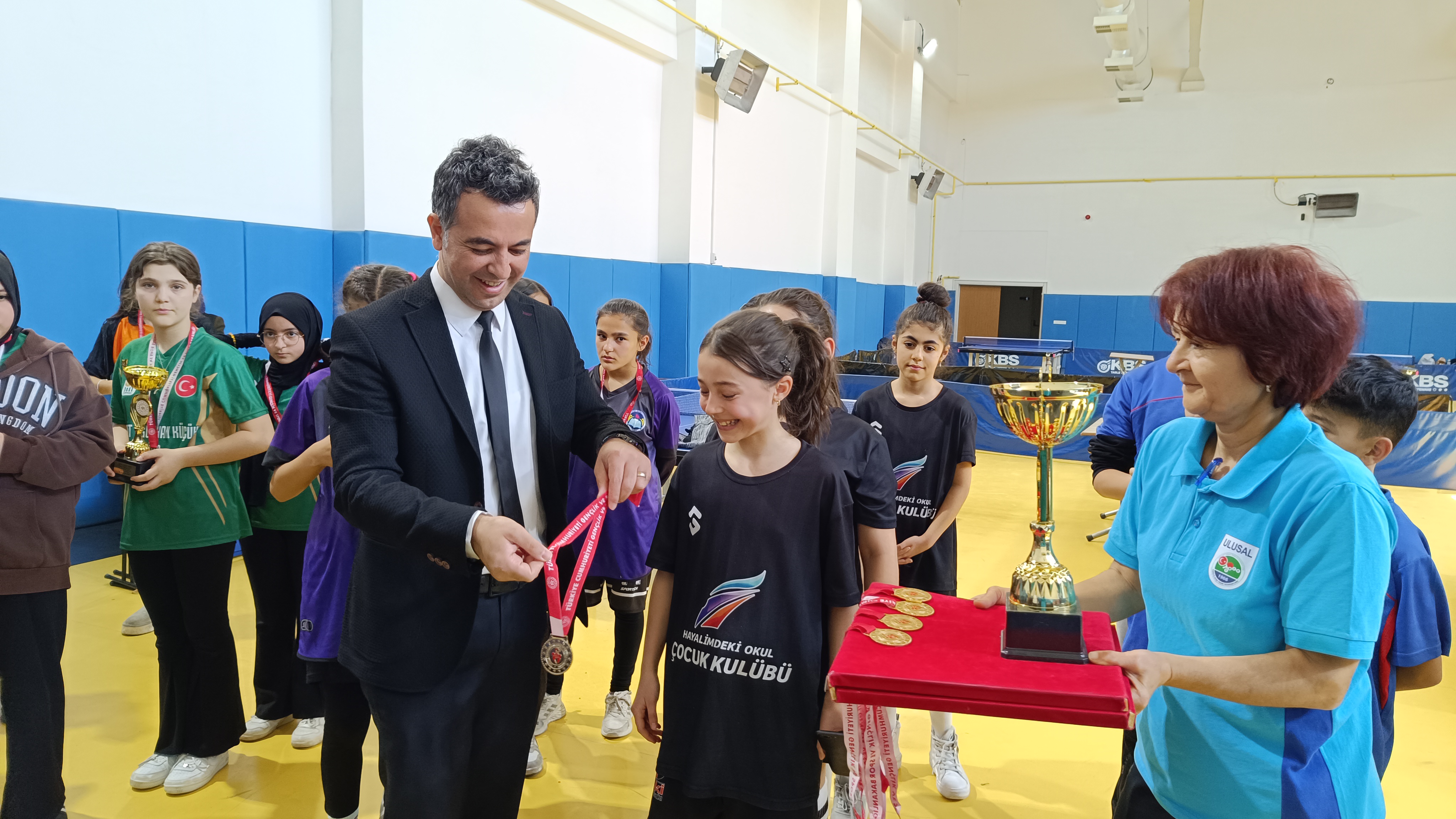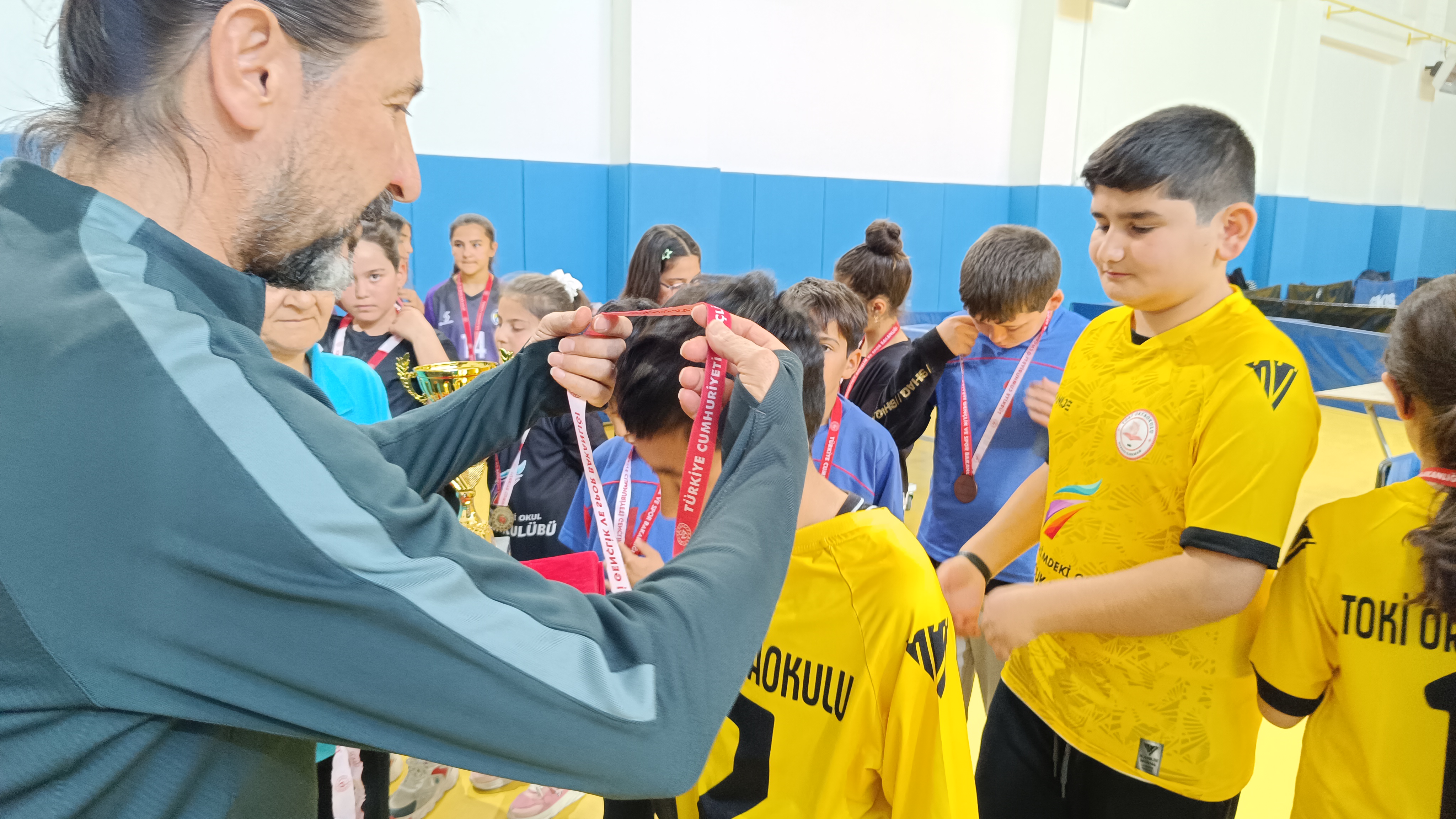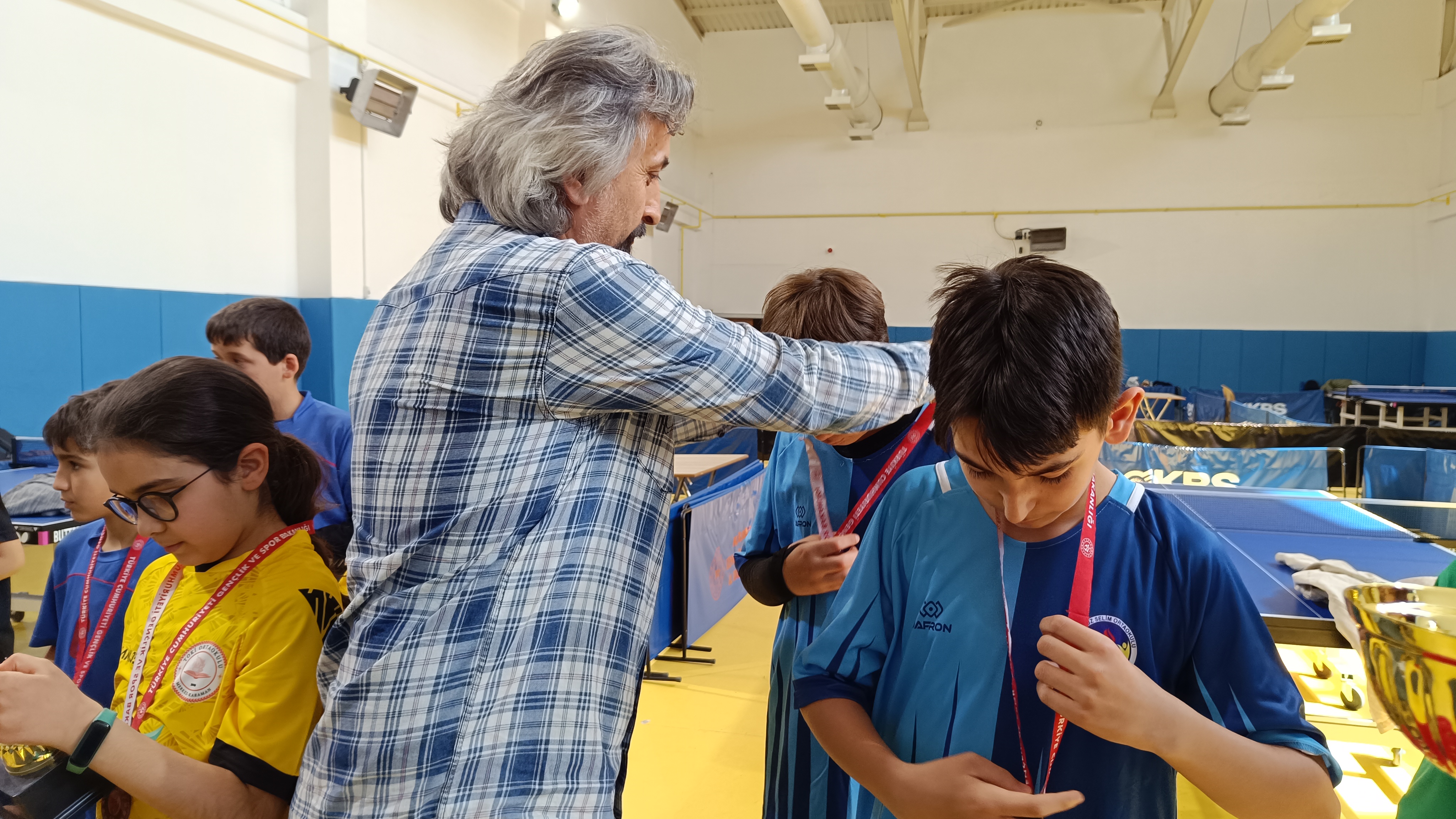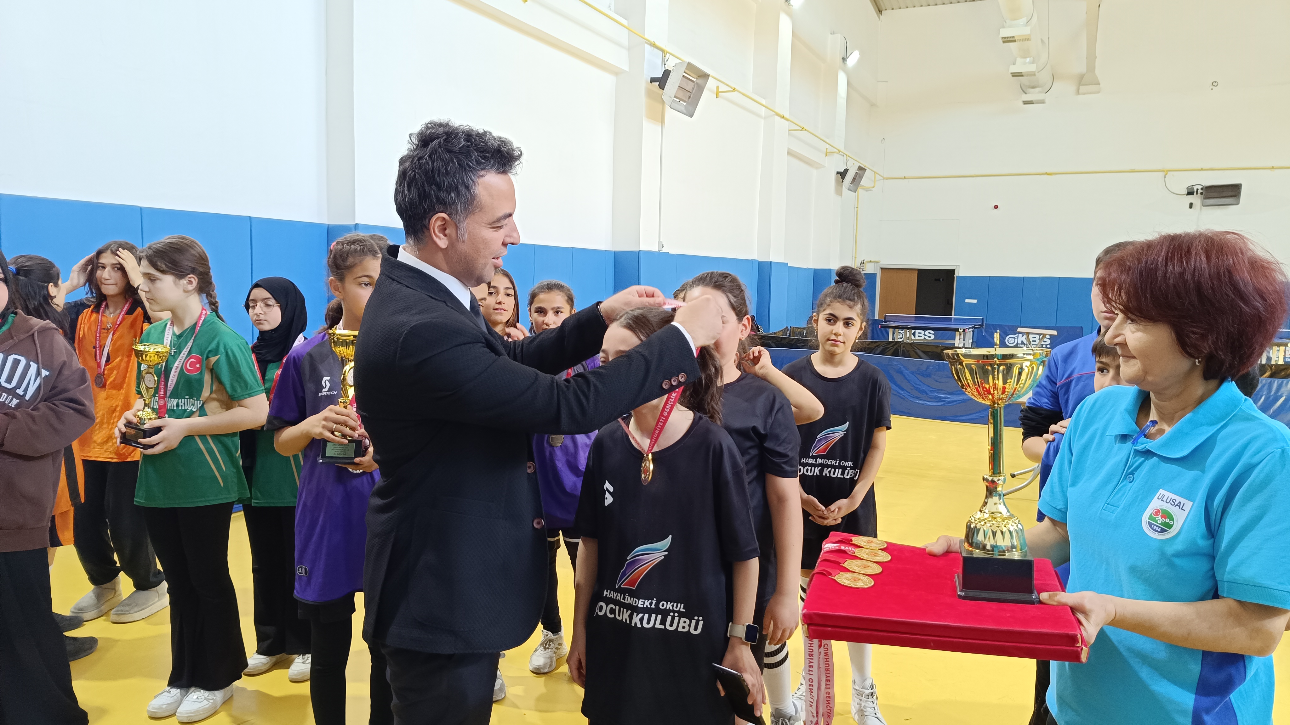 Küçüklerin kıyasıya mücadele ettiği maçlarda dereceye giren öğrencilere madalya ve kupaları verildi.