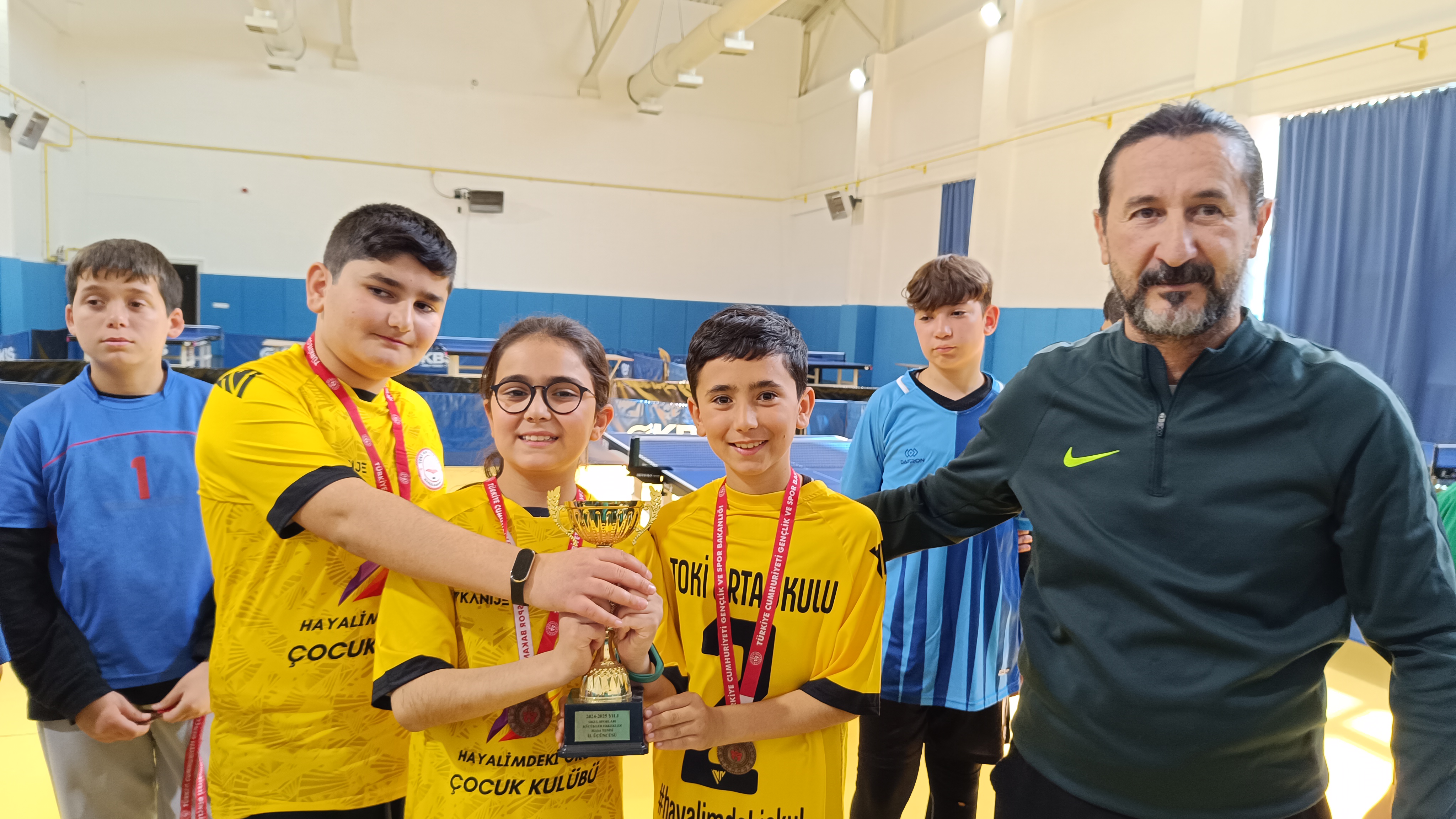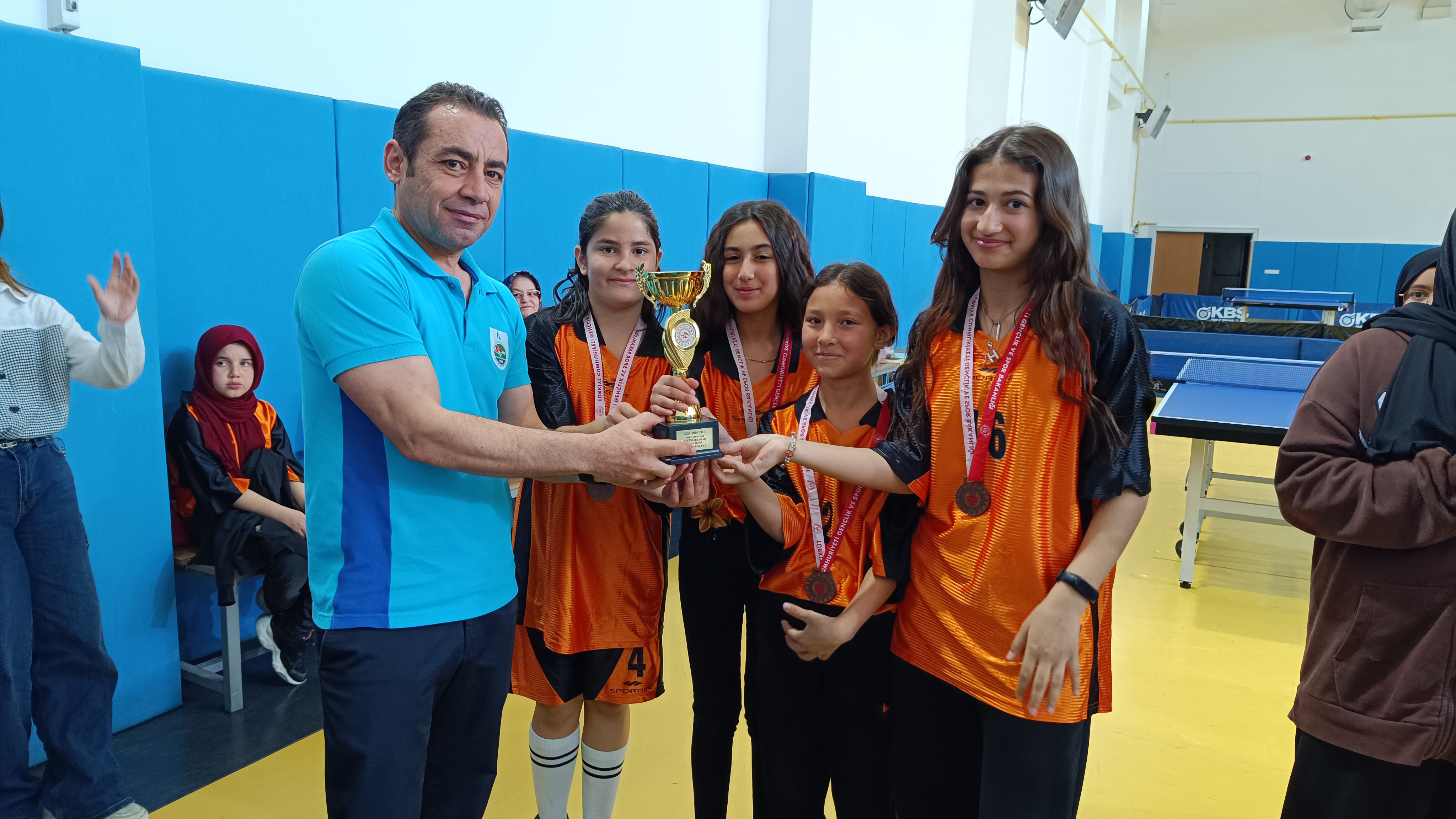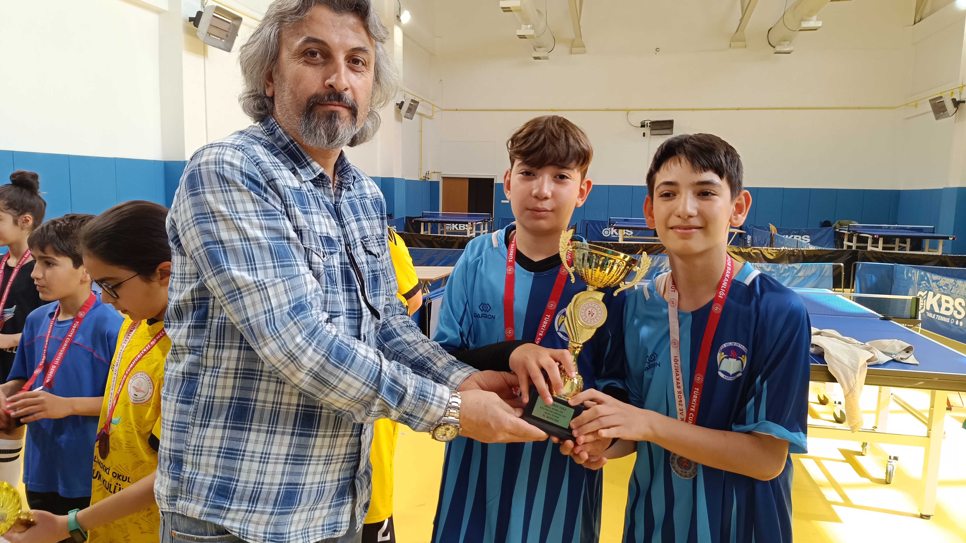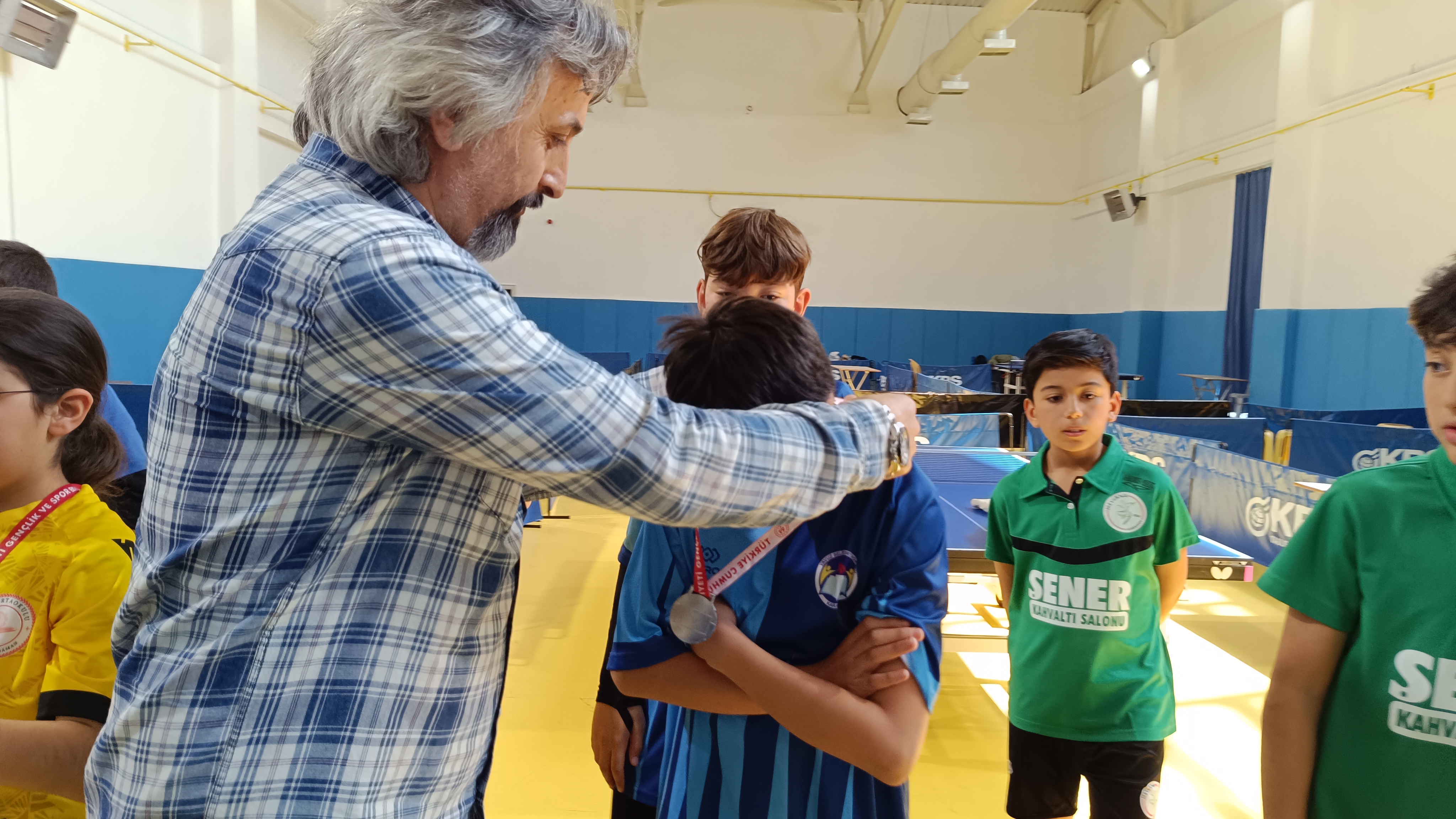 Küçüklerin kıyasıya mücadele ettiği maçlarda dereceye giren öğrencilere madalya ve kupaları verildi.