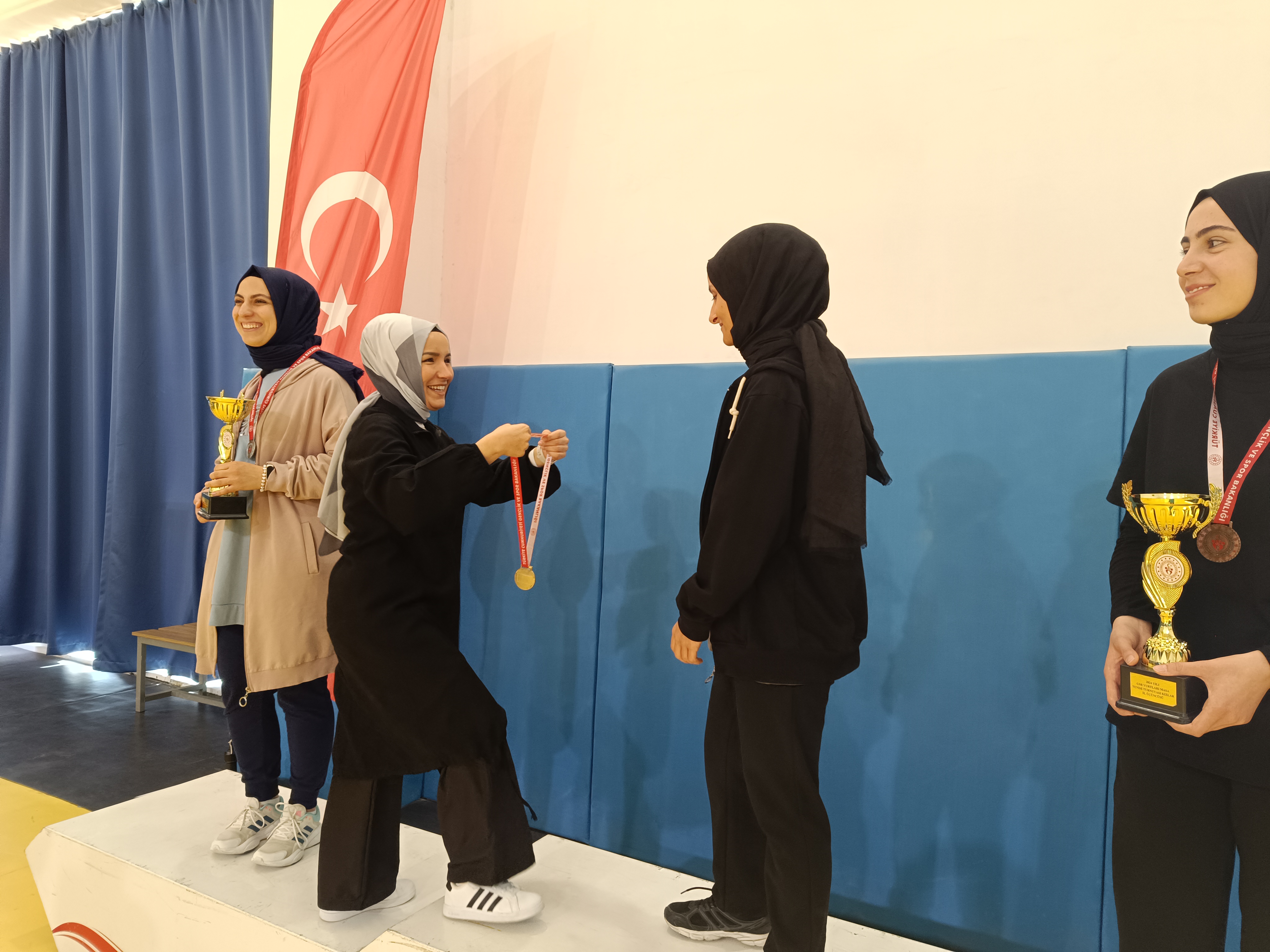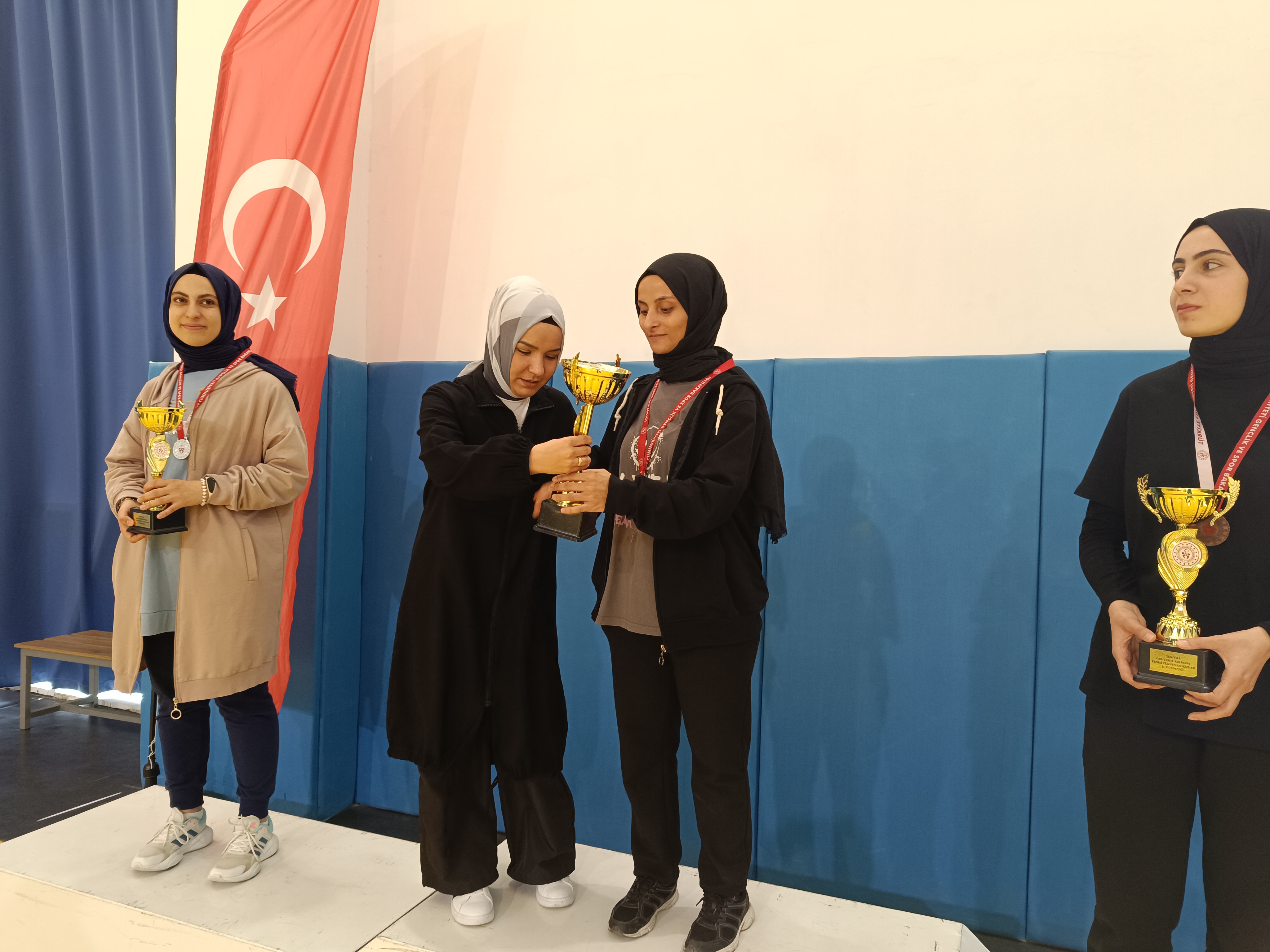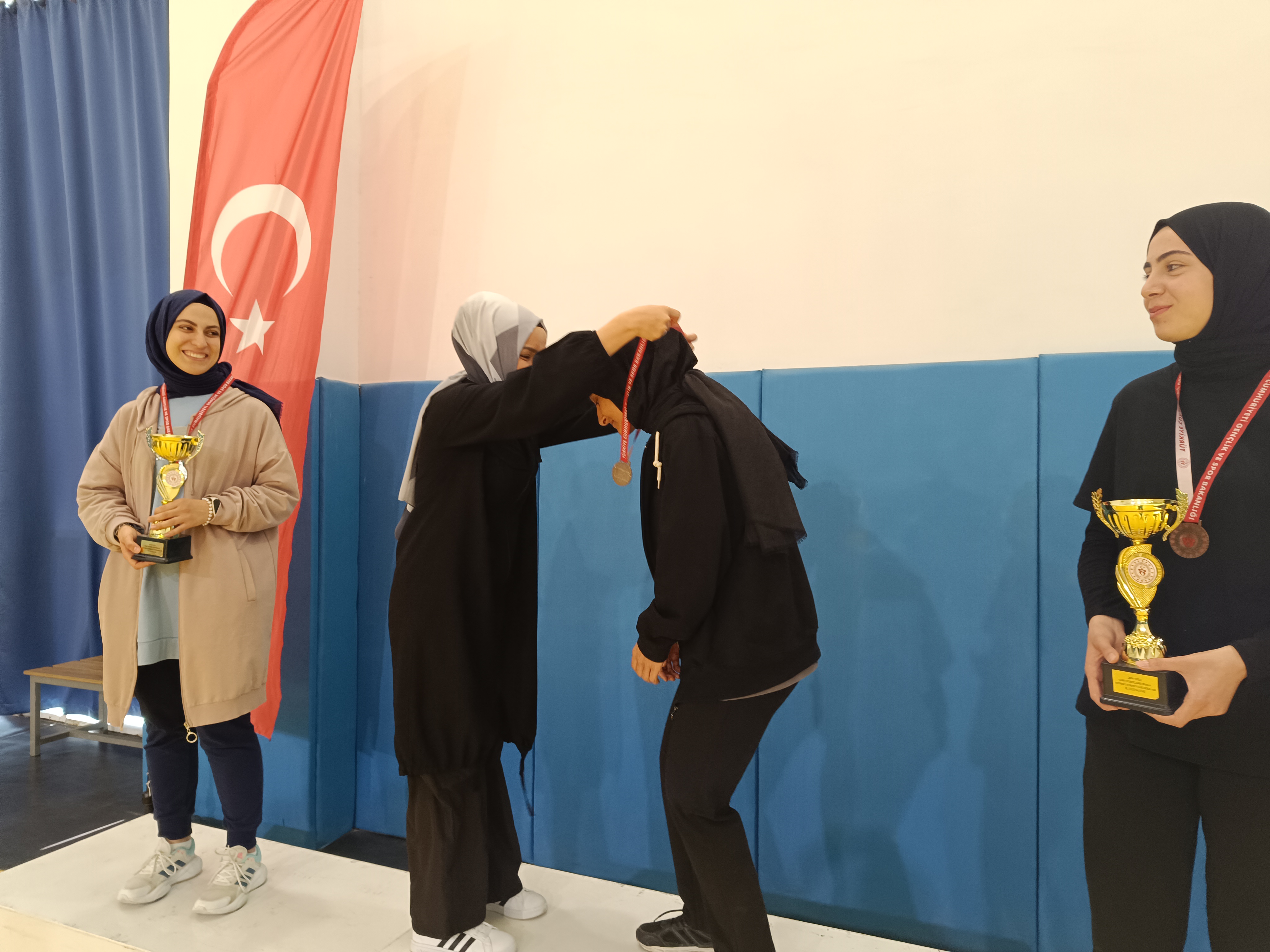 Dereceye giren öğrencilere madalya ve kupaları verildi.