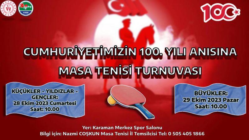 CUMHURİYETİMİZİN 100. YILI ANISINA DÜZENLENECEK MASA TENİSİ TURNUVASINA BEKLİYORUZ